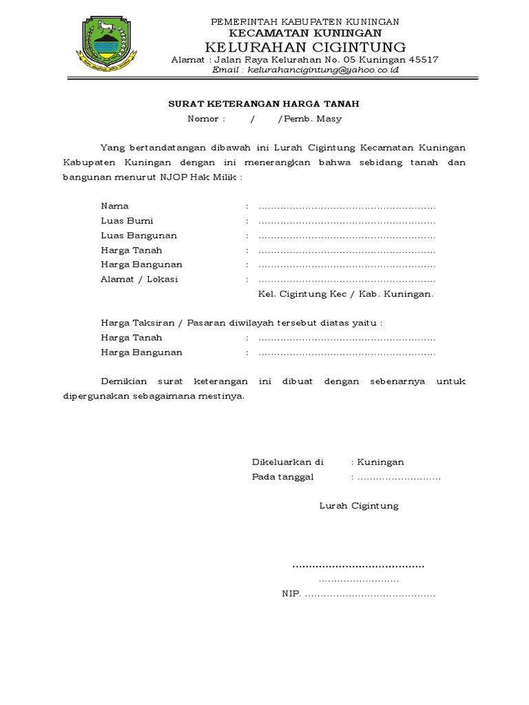 Surat Keterangan Harga Tanahdoc Pdf
